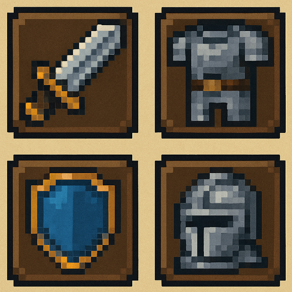 新規「武器」と既存「兜」「鎧」の全組合せを確認 |