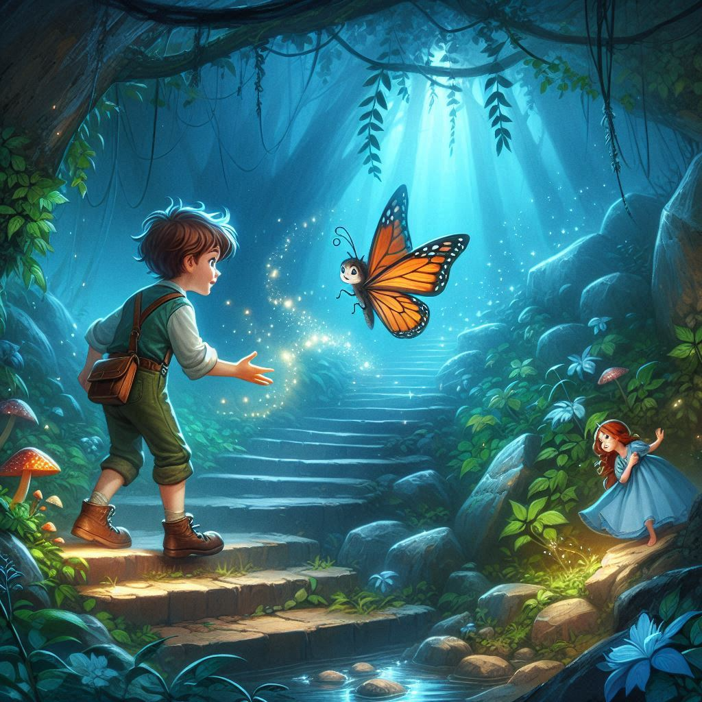 ある日、少年は道路の隅に倒れている蝶々の精を見つける。か細い声で助けを求めた彼女をきっかけに、少年は不思議な世界へ足を踏み入れる。…