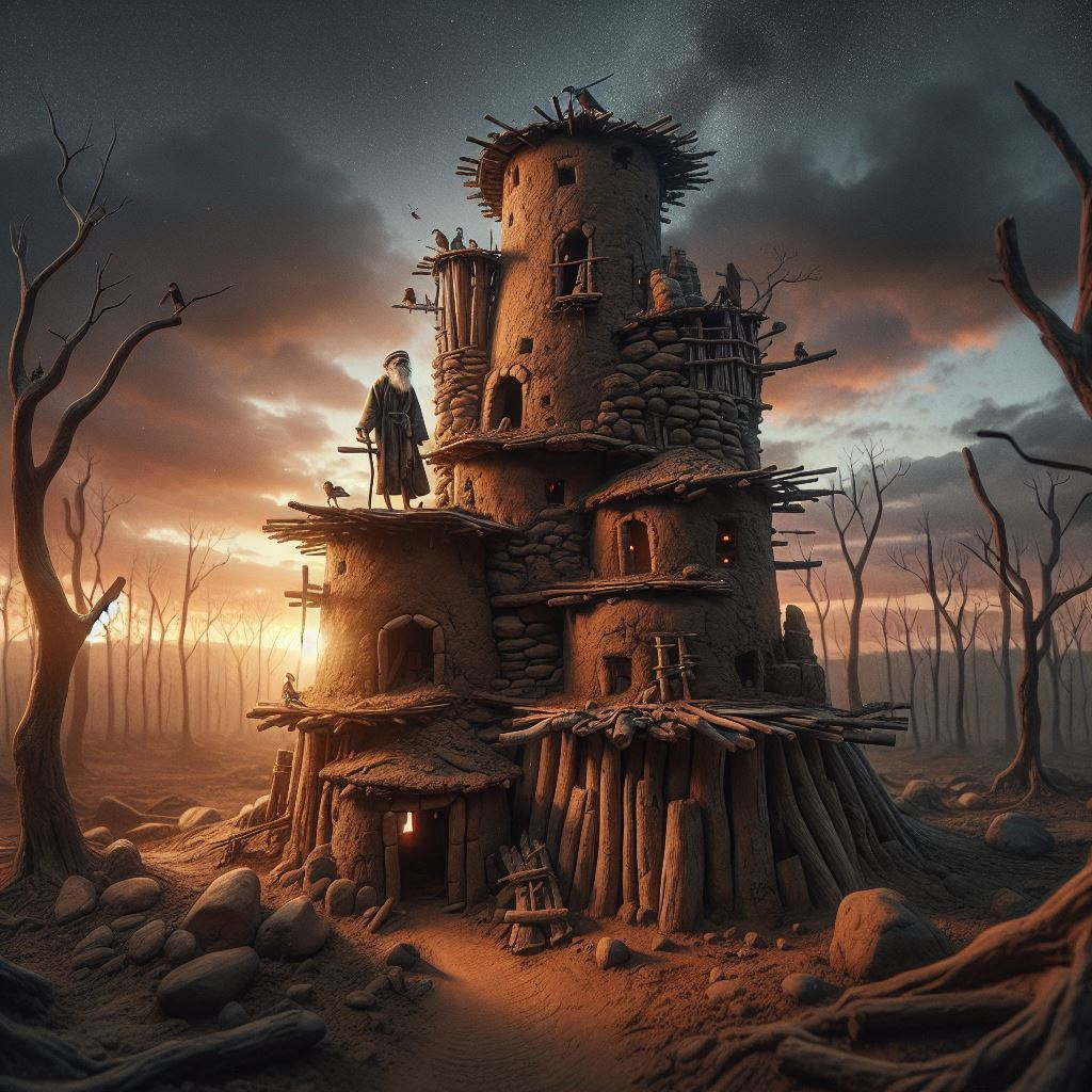 孤独なおじさんは、いつか家族が帰ってくると信じ、土と木と石を積み上げ続ける。気づけばそれは空へ伸びる塔となっていた。…