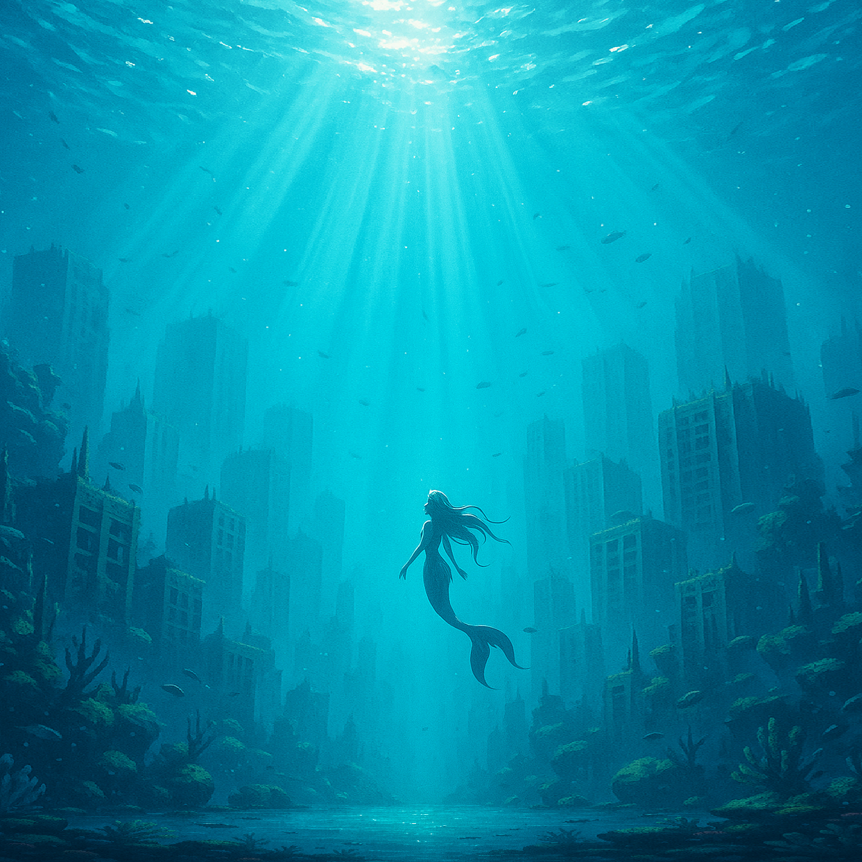 透きとおるように美しい海の底。そこにはかつての都市が静かに沈んでいる。瓦礫の中に差し込む光の中で、一人の人魚の少女が優雅に暮らしていた。…